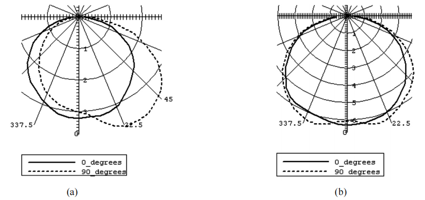 Figure 5: The candlepower distributions at 0 and 90 degree (a) with only one LED and (b) one LED at both ends.