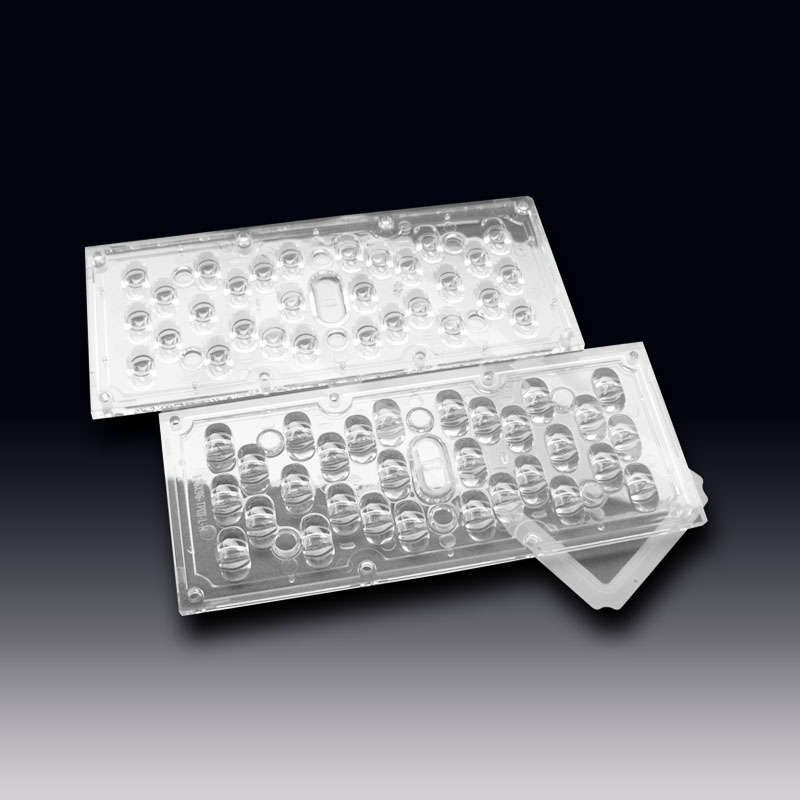 4x6 arrays 50 x 50 mm LED lens for 2525, 3030, 3535 LEDs, suitable for flood lights, tunnel lights, stadium lights, parking lot lighting, and high bay lighting. (HX-F4x6-xx Series)