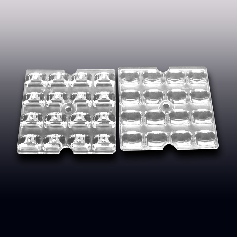4x4 arrays 50 x 50 mm LED lens for 2525, 3030, 3535 LEDs, suitable for flood lights, tunnel lights, stadium lights, parking lot lighting, and high bay lighting. (HX-F4x4-xx Series)