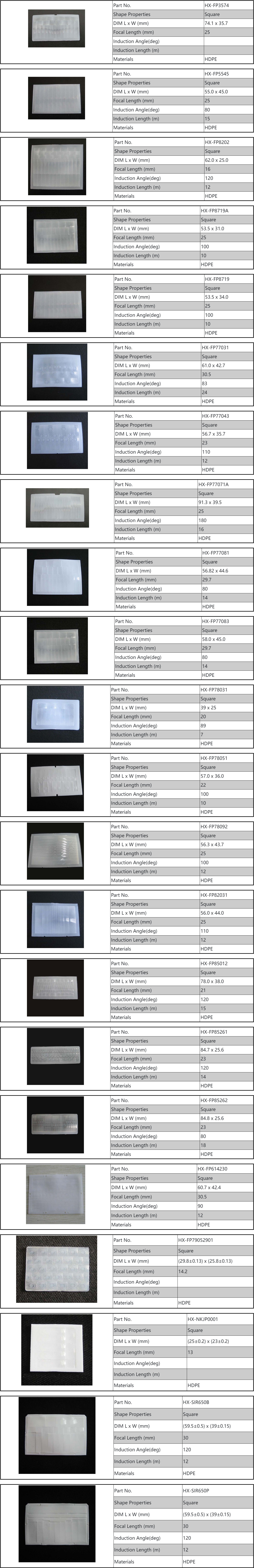 HX Optoelectronics Technology Co., Ltd. specializes in the production of led optical lenses, led street lamp lenses, CREE led lenses, led lenses, and Fresnel lenses. It is one of the largest manufacturers of led lenses. Infrared sensor Fresnel lenses are widely used in human body sensor switches , Alarms, infrared thermometers and infrared imaging, etc., we can provide users with a series of Fresnel lenses with different sensing angles, sensing distances, sizes, and test ratios. The function of the infrared sensor lens is as follows: 1. It can collect as much infrared rays as possible for the sensor to improve the sensitivity. 2. The sensing angle of the sensor is expanded. 3. The material has a filtering effect, which can block visible light and infrared light other than infrared light of the human body, and enhance anti-interference ability .