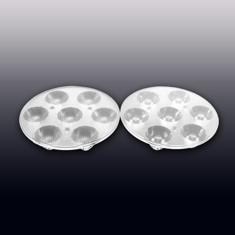 99. 3535 RGBW Lens: 4-in-1 Color Mixing Lens The 3535 RGBW lens (10mm x 10mm) combines four channels (red, green, blue, white) into a single 120° beam, ideal for dynamic color lighting. The PMMA structure (92% transmittance) ensures uniform color mixing, with heat resistance up to 80°C. Technical specs: compatible with 3535 RGBW SMDs, snap-in installation, and anti-yellowing treatment. Used in stage lighting, architectural facades, or smart home systems. 100. Optics for Cree XPH 352 Hi LED Designed for Cree XPH 352 Hi LEDs, this optical system includes a 25° collimator lens (30mm diameter) and aluminum reflector, enhancing light output by 85%. The PMMA lens (92% transmittance) and 95% reflective aluminum create a precise beam for spotlights or projectors. Technical specs: heat resistance up to 90°C, snap-fit mounting, and compatibility with 10W-20W Cree LEDs.