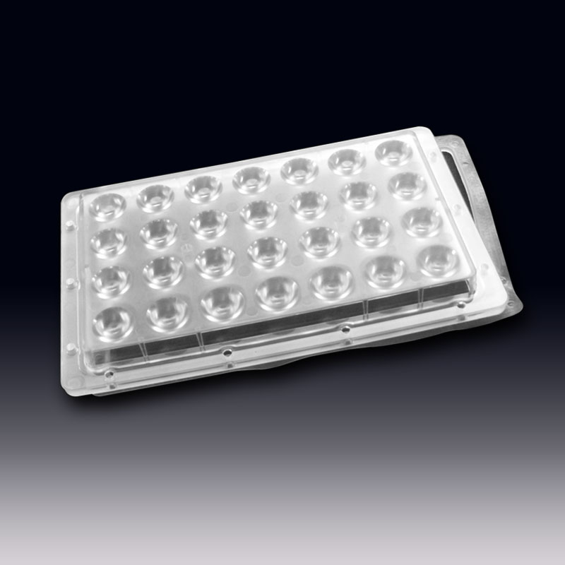 All subfamilies have the same dimensions, excellent optical performance, and high cost-effectiveness. They have a wide selection of beams from narrow to wide flood. Perfectly compatible with CREE XQE, XPE, XHP35, XPL; OSLON Square, P7, P8; Seoul Z5P, Luxeon T; Samsung 3535; Nichia 119A, 3030 3535 LEDs, etc. Widely used in basketball court lighting, gymnasium lighting, badminton court lighting, volleyball court lighting, underwater lighting, outdoor landscape lighting (or lens), security equipment, traffic display lighting (or lens), electronic components, automotive lamp lenses, beam lamp lenses, surgical shadowless lamps, and stage lighting.