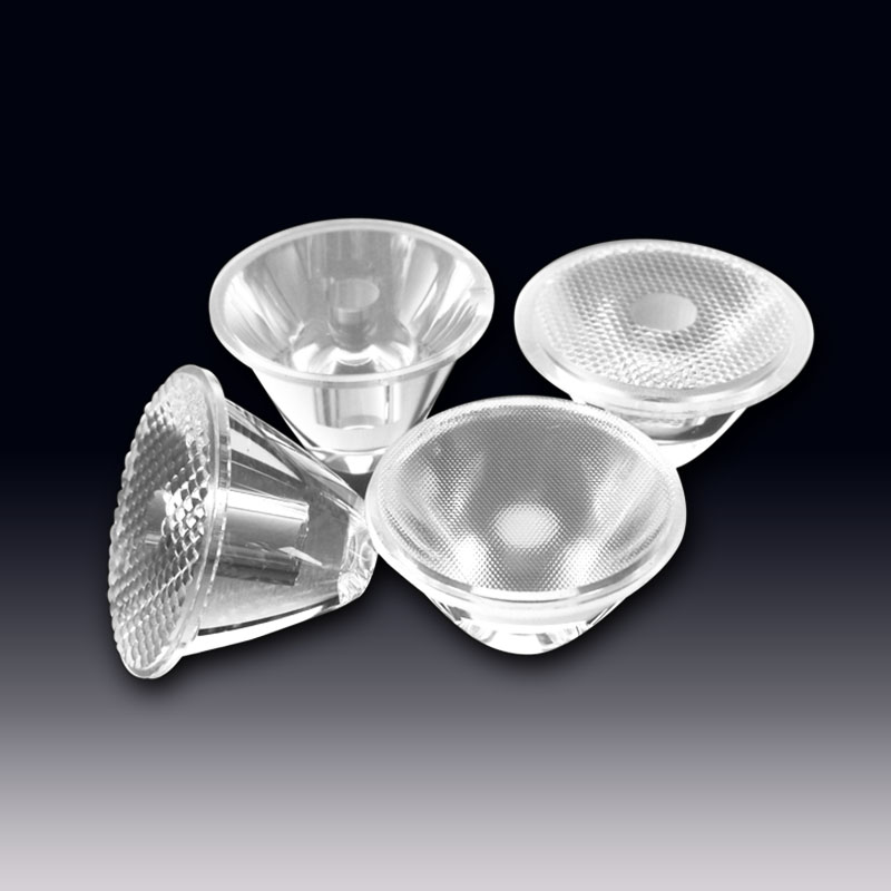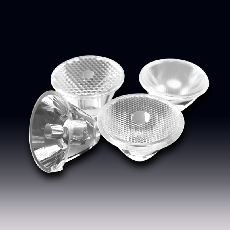 Single ∅26 to ∅30mm optical LED lens. All subfamilies have the same dimensions, excellent optical performance, and high cost-effectiveness. They have a wide selection of beams from narrow to wide flood. Perfectly compatible with CREE XQE, XPE, XHP35, XML, XHP50, XHP70; MTG OSLON Square, P7, P8; Seoul Z5P, Luxeon T; Samsung 3535; Nichia 119A, etc. 3030 3535 5050, 7070, 9090 RGBW LEDs. Widely used in basketball court lighting, gymnasium lighting, badminton court lighting, volleyball court lighting, underwater lighting, outdoor landscape lighting (or lens), security equipment, traffic display lighting (or lens), electronic components, automotive lamp lenses, beam lamp lenses, surgical shadowless lamps, and stage lighting.