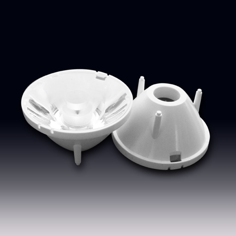 99. 3535 RGBW Lens: 4-in-1 Color Mixing Lens The 3535 RGBW lens (10mm x 10mm) combines four channels (red, green, blue, white) into a single 120° beam, ideal for dynamic color lighting. The PMMA structure (92% transmittance) ensures uniform color mixing, with heat resistance up to 80°C. Technical specs: compatible with 3535 RGBW SMDs, snap-in installation, and anti-yellowing treatment. Used in stage lighting, architectural facades, or smart home systems. 100. Optics for Cree XPH 352 Hi LED Designed for Cree XPH 352 Hi LEDs, this optical system includes a 25° collimator lens (30mm diameter) and aluminum reflector, enhancing light output by 85%. The PMMA lens (92% transmittance) and 95% reflective aluminum create a precise beam for spotlights or projectors. Technical specs: heat resistance up to 90°C, snap-fit mounting, and compatibility with 10W-20W Cree LEDs.