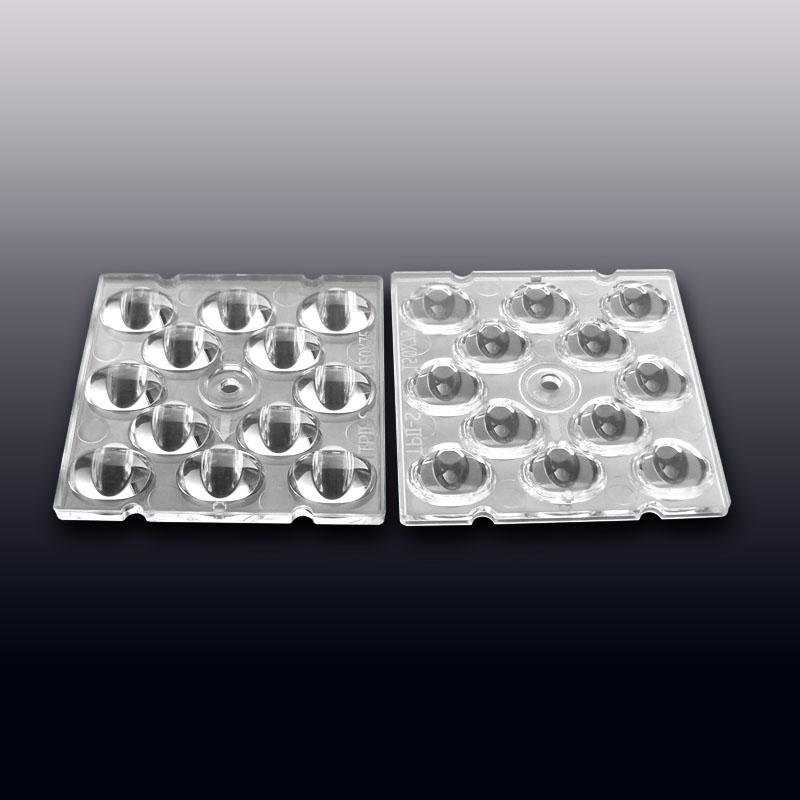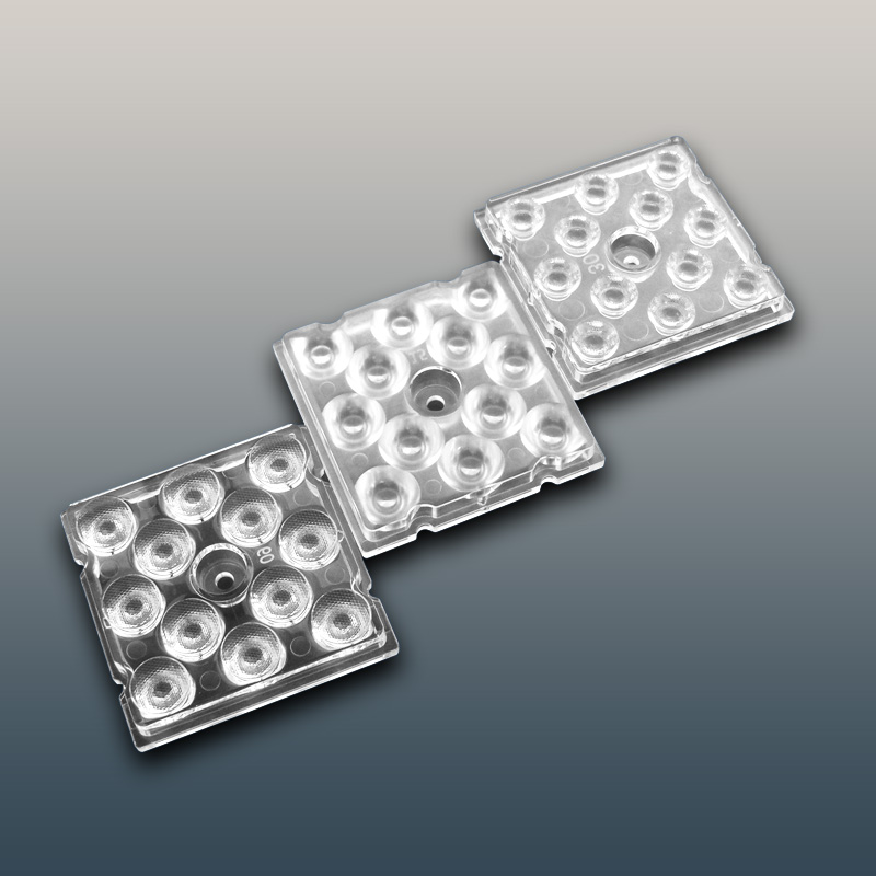 HX-F2x6-xx Series optics (50x50mm 2X6 arrays)) ensure optimal lighting conditions for both players and spectators that meet the standards and requirements of different sports,for flood lights,tunnel lights,stadium lights,parking lot lighting.Beams are designed for symmetrical and asymmetrical low glare sports floodlights. Optimized for HP 3535 and compatible with up to 5050 size flat LED packages.It is HONGXUAN's most comprehensive product family with a wide variety of different beams suitable for both outdoor and indoor lighting. Being especially designed for street lighting they provide highly efficient and uniform lighting. Designed for LEDs of latest generation, from 100 lm/W to 300lm/W; The optics, made of PMMA, PC and Silicone, UV protected, never come in contact with the LED or the PCB; Easy assembly: insert the screws into the perimeter holes and fasten the module to the PCB. Preset for the housing of sensors; Available with PCB for testing;