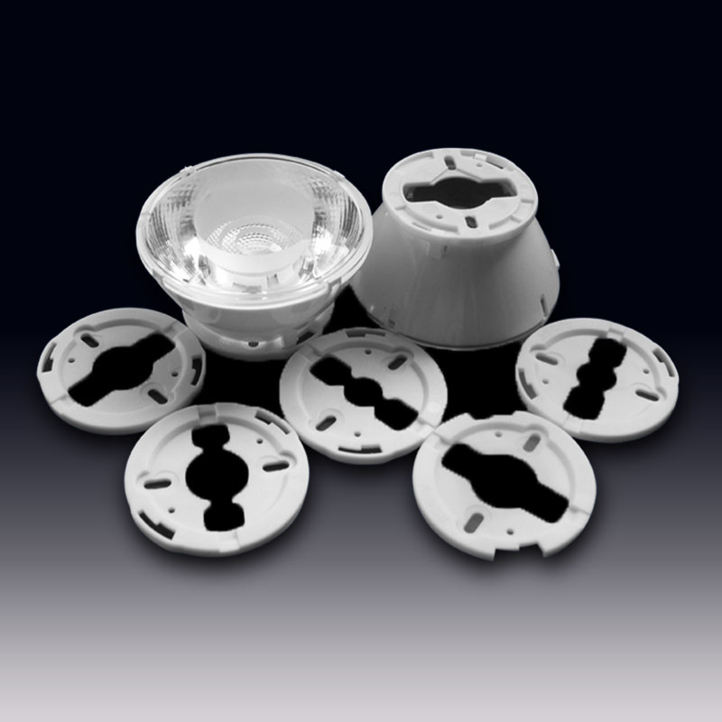 All subfamilies share the same dimensions and come preassembled in lightweight, durable holders with fastening tape—enabling fast and easy installation. They offer a wide range of beam angles, from narrow spot to wide flood. Fully compatible with Zhaga holders for Lumileds, CREE 1313, 1507, 1304, OSRAM S8, S9, S10, P10, Bridgelux V6, V8, V10, VERO10, V15, VERO13, Citizen CXM-6, CXM-7, CXM-9, CXM-11, CXM-14, CXM-18, and Tridonic LES10, LES17 COB LEDs. Widely applied in basketball court lighting, gymnasium lighting, badminton court lighting, volleyball court lighting, underwater lighting, outdoor landscape lighting (or lenses), security equipment, traffic display lighting (or lenses), electronic components, automotive lamp lenses, beam lamp lenses, and stage lighting.