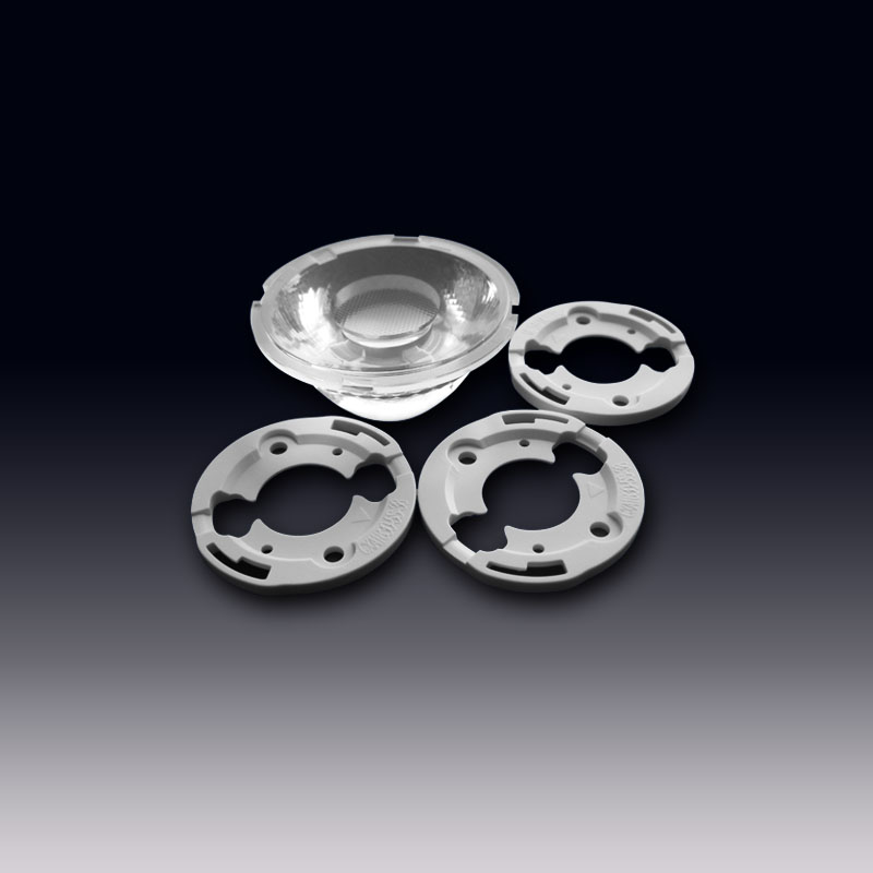 All subfamilies share the same dimensions and come preassembled in lightweight, durable holders with fastening tape—enabling fast and easy installation. They offer a wide range of beam angles, from narrow spot to wide flood. Fully compatible with Zhaga holders for Lumileds, CREE 1313, 1507, 1304, OSRAM S8, S9, S10, P10, Bridgelux V6, V8, V10, VERO10, V15, VERO13, Citizen CXM-6, CXM-7, CXM-9, CXM-11, CXM-14, CXM-18, and Tridonic LES10, LES17 COB LEDs. Widely applied in basketball court lighting, gymnasium lighting, badminton court lighting, volleyball court lighting, underwater lighting, outdoor landscape lighting (or lenses), security equipment, traffic display lighting (or lenses), electronic components, automotive lamp lenses, beam lamp lenses, and stage lighting.